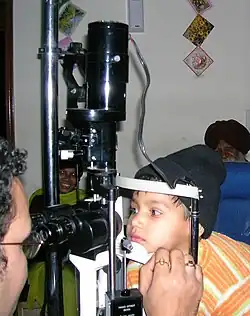 Lâmpada de fenda ou biomicroscópio ocular é um instrumento usado por oftalmologistas, para avaliação do meio ocular.