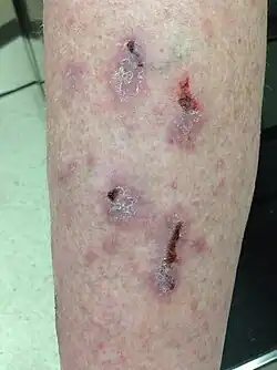 - ↑ Ramos-e-Silva, Marcia; Rodrigo. «Red face revisited: Disorders of hair growth and the pilosebaceous unit». Clinics in Dermatology. 32 (6): 784–799. doi:10.1016/j.clindermatol.2014.02.018