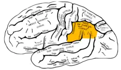 - Um deles, o giro supramarginal [en] (BA 40), arqueia-se sobre a extremidade voltada para cima do sulco lateral; é contínuo na frente com o giro pós-central e atrás com o giro temporal superior.