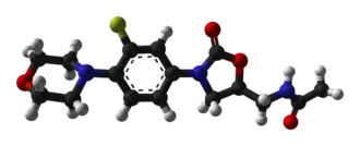 Linezolida é um antibiótico sintético de amplo espectro, e geralmente bacteriostático, da classe das oxazolidinonas.[1] É indicado em casos de infecções do trato respiratório baixo, nos tecidos moles e na pele, além de infecções por enterococos.[1] Possui boa aceitação e tolerância, uma vez que menos de 1% dos pacientes tratados com este fármaco apresentam diarreia, cefaleia, vômito, dores abdominais, neutrofilia e alterações no paladar. Pode provocar colite pseudomembranosa.[1] O fármaco geralmente não é administrado durante a gravidez, salvo sob orientação médica onde os benefícios superem os riscos. Quanto a eliminação no leite materno, não existem estudos que mostrem ser ou não eliminado por esta via.[1]