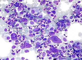 | Micrografia de um linfoma de Hodgkin (coloração de Field) | |