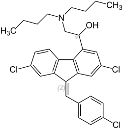 Lumefantrina é um medicamento antimalárico, usado apenas em associação com um arteméter.[1] Como a lumefantrina tem uma meia-vida muito mais longa que o arteméter, pensa-se que seja capaz de eliminar quaisquer parasitas residuais que possam restar no fim do tratamento.[2]