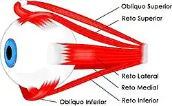 O músculo oblíquo superior é um músculo extraocular . Único músculo inervado pelo nervo troclear , o quarto par cranial, é responsável por inciclotorção do olho. Também auxilia, secundariamente, no movimento de descenso e adução.[ 1]