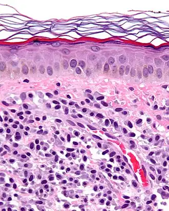| Micrografia de uma mastocitose. Biópsia da pele. Coloração H&E. | |