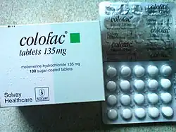 A mebeverina (cloridrato) é um fármaco antiespasmódico, utilizado no alívio de espasmos intestinais, cólicas, cólon espasmódico e diverticulite.[4]