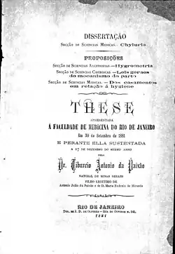 Tese médica de Tibúrcio Antônio da Paixão de 1881.