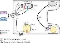 . PMID 9356500. doi:10.1073/pnas.94.23.12627 - ↑ «Skin melanocytes: biology and development». Advances in Dermatology and Allergology/Postȩpy Dermatologii I Alergologii. 30. ISSN 1642-395X. PMC 3834696