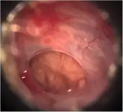 Existem diversas doenças que provocam uma perda da coloração normal da membrana timpânica, como as otites agudas, situação em que o tímpano adquire uma coloração mais ou menos avermelhada sobre um fundo seroso e purulento.[carece de fontes]