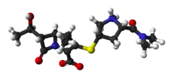 Meropenem é um fármaco antibiótico beta-lactâmico da subclasse carbapenêmicos. Seu espectro de ação é similar ao imipenem, melhor atuando sobre gram-negativos e anaeróbios.[2]