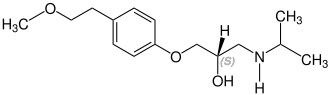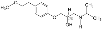 Metoprolol contém um estereocêntrico e consiste em dois enantiómeros. Este é um racemato, ou seja, uma mistura 1: 1 de (R) - e a forma (S):[9]