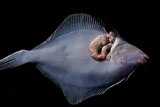Solha com um xenoma causado pelo microsporídio Glugea stephani.