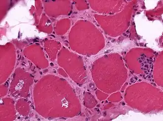 | Biópsia muscular de uma pessoa diagnosticada com miosite. | |