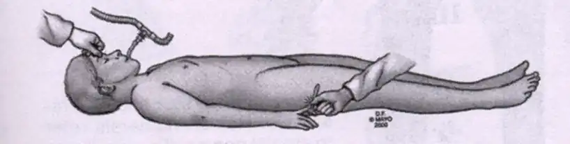 O paciente não tem respiração espontânea, ou seja, qualquer movimento respiratório próprio, inclusive batimento de asa do nariz deve ser observado.