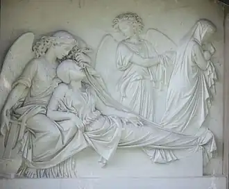 | Morte da mãe enquanto o recém-nascido lhe é levado. Alto-relevo, 1863, Striesener Friedhof em Dresden | |