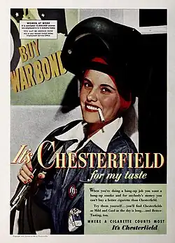Outras empresas seguiram o exemplo da American Tobacco Company. A Philip Morris introduziu o Marlboro em 1925, anunciado como tão "suave quanto maio" e com pontas de marfim elegantes para atrair mulheres.[12] Outras marcas ofereceram propagandas similares, promovendo glamour, autonomia e beleza, tornando o cigarro um acessório sedutor. O medo de ganho de peso continua sendo uma das principais razões pelas quais as mulheres fumam. As campanhas promoveram o cigarro como símbolo de igualdade e autonomia.[13]