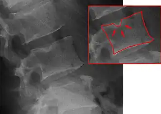 | Nódulo de Schmorl observado ao raio-X de coluna lombar | |