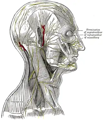 | Os nervos do couro cabeludo, face e lado do pescoço. | |