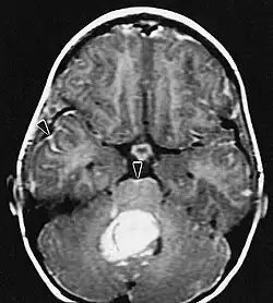 Avanços significativos foram feitos recentemente no diagnóstico e tratamento dessas lesões, resultando em melhora da sobrevida e controle dos sintomas. O início dos sinais e sintomas é semelhante ao de outras lesões maciças no cérebro. O método diagnóstico de escolha é a ressonância magnética com meio de contraste.