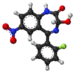 | Nome IUPAC | 5-(2-fluorophenyl)-3-hydroxy-7-nitro-2,3-dihydro-1H-1,4-benzodiazepin-2-one | ||||||||||