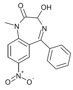 | Nome IUPAC | 7-nitro-3-hydroxy-5-phenyl-1-methyl-1H-benzo[e] [1,4]diazepin-2(3H)-one | ||||||||||