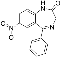 | Nome IUPAC | 9-nitro-6-fenil-2,5-diazabiciclo[5.4.0]undeca-5,8,10,12-tetraen-3-ona | ||||||||||||||