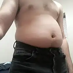 Os homens são mais suscetíveis ao acúmulo de gordura na parte superior do corpo, provavelmente na barriga, devido às diferenças de hormônios sexuais.[94] Ao comparar a gordura corporal de homens e mulheres, observa-se que os homens têm quase o dobro de gordura visceral do que as mulheres na pré-menopausa.[95][96]