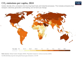 Text was copied from this source, which is available under a Creative Commons Attribution 4.0 International License - ↑ «Per capita CO₂ emissions». Our World in Data. Consultado em 9 de maio de 2022