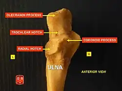 - ↑ Manaster, B. J.; Crim, Julia, eds. (1 de janeiro de 2016). Anatomia Radiográfica e Artrográfica do Cotovelo. Anatomia por Imagem: Musculoesquelético (Segunda Edição) (em inglês). Filadélfia: Elsevier. pp. 200–213. ISBN 978-0-323-37756-0. doi:10.1016/b978-0-323-37756-0.50019-3. Consultado em 2 de setembro de 2025