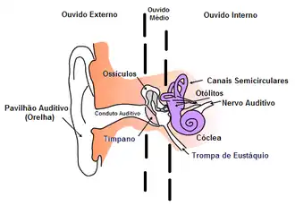 3. 1 2 3 4 Borges, Antonio. «Noções da anatomia da orelha» (PDF). Inclusão e Tecnologias Assistivas. Consultado em 28 de dezembro de 2012