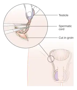 A orquiectomia pode ser indicada em virtude de cancro, tumor ou outra doença que afete a região. O cancro de próstata é hormônio-dependente e, portanto, a cirurgia pode ser utilizada como um tipo de supressão hormonal.[2] O Tumor germinativo dos testículos é a neoplasia mais comum em homens jovens entre 15 e 35 anos e corresponde a 1% de todas as neoplasias malignas no sexo masculino. Pacientes que desenvolvem carcinoma testicular tem de 500 a 1.000 vezes mais chance de desenvolver câncer no testículo contralateral. A bilateralidade e/ou recidivas de tumores no mesmo órgão acometem 2% a 3% dos pacientes. A orquiectomia bilateral ainda permanece como o padrão-ouro de tratamento, resultando em problemas como infertilidade, reposição contínua de androgênios e alterações psicológicas devido à castração precoce. Atualmente, a grande parte dos pacientes com tumores de testículos sobrevive devido às modernas técnicas de tratamento. Assim têm se fortalecido o princípio da cirurgia preservadora de órgão, com menor morbidade sem comprometer a sobrevida livre de doença. Portanto, quando possível devemos procurar não só a cura do câncer, mas também a melhora da qualidade de vida e diminuição de morbidade nos anos que se seguirão à cura, tentando manter ao máximo os níveis de qualidade de vida prévios ao tratamento. Considerando estes preceitos de qualidade de vida, a cirurgia poupadora tem se desenvolvido em pacientes com tumores bilaterais ou em pacientes selecionados com tumores germinativos em testículos únicos.