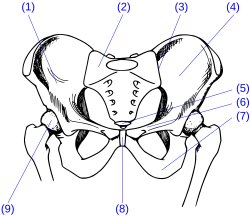 - ↑ EDUARDO ÁLVARO VIEIRA, EDIE BENEDITO CAETANO, CÁSSIO AUGUSTO DE MELLO RUSCONI, PAULO MARCEL YOSHII (2001)Contribuição ao estudo anátomo-funcional da sínfise púbica: análise crítica de 10 peças anatômicas. Disponível em: