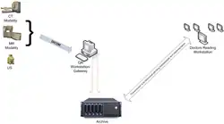 - Dispositivos de aquisição de imagens (modalidades de imagem) – Ex: ressonância magnética, tomografia computadorizada, PET, angiografia por raios X, ecocardiografia, etc. Esses dispositivos e computadores gateway de aquisição facilitam a digitalização de imagens envolvendo aquisição, conversão para formato padrão PACS (DICOM) , e pré-processamento de dados de imagem (ou seja, redimensionamento, remoção de fundo, calibração de orientação).[4]
