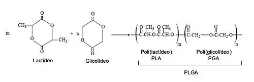 PLGA ou poli(ácido lático-co-ácido glicólico) é um copolímero utilizado em uma variedade de dispositivos terapêuticos aprovados pela Administração de Drogas e Alimentos (o FDA) devido a sua alta taxa de biodegradabilidade e biocompatibilidade. O PLGA foi primeiramente sintetizado na década de 70, devido a necessidade de equilbrar as propriedades físicas e químicas de biopolímero. Já que o PLGA é sintetizado pela co-polimerização de abertura de anel de dois diferentes monômeros, os dímeros cíclicos (1,4-dioxano-2,5-diona) de ácido glicólico e ácido láctico, ele possibilita a modificações de características como resistência mecânica e taxa de dregadação pela composição de seus monômeros originais (PLA e PGA)[1]. Os polímeros podem ser sintetizados como copolímeros aleatório ou de blocos, conferindo propriedades adicionais ao polímero. Catalisadores comuns para a preparação deste polímero incluem 2-etilexanoato de estanho (II), alcóxidos de estanho(II), ou isopropóxido de alumínio. Durante a polimerização, as unidades monoméricas sucessivas (unidades de ácido glicólico ou ácido láctico) são ligadas ao PLGA por ligações éster, produzindo então um poliéster alifático linear como produto.[2]