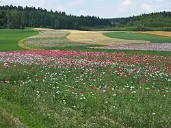 A palha de papoula (também conhecida como palha de ópio, palha de ópio ceifada, cápsula de papoula triturada, canudo de papoula ou casca de papoula) é derivada das papoulas de ópio (Papaver somniferum) que são colhidas quando totalmente maduras e secas por meios mecânicos. A palha de papoula do ópio é o que resta depois que as vagens das sementes são colhidas, ou seja, os caules, o caule e as folhas secos das papoulas cultivadas para suas sementes.[1] As folhas, o caule e a vagem da semente secos no campo são usados na fabricação comercial de morfina ou de outras drogas derivadas do alcaloide da papoula, primeiro processando o material, separando as sementes e, em seguida, fazendo um concentrado de palha de papoula,[2] quando não há extração usando os métodos tradicionais de extração de látex.[3] Originalmente, a palha era considerada um subproduto agrícola da colheita mecanizada de sementes de papoula, que era cultivada principalmente por suas sementes comestíveis e produtoras de óleo. Isso mudou em 1927, quando János Kabay desenvolveu um processo químico para extrair morfina da cápsula triturada.[2] A palha de papoula concentrada, que consiste principalmente na cápsula triturada sem as sementes,[4] logo se tornou uma fonte valiosa de morfina. Atualmente, o concentrado de palha de papoula é a principal fonte de muitos opiáceos e outros alcaloides. É a fonte de 90% do suprimento mundial de morfina legal (para uso médico e científico)[5] e, em alguns países, também é uma fonte de morfina ilegal, que pode ser transformada em heroína ilegal.[4]
