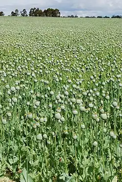 A partir de 1950, a produção média anual por hectare foi estimada em 675 kg de sementes de papoula e 450 kg de palha de papoula (palha de cápsula seca), que, por sua vez, foi estimada em cerca de 1,5 kg de morfina (em anos bons).[10]