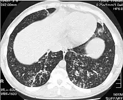 - ↑ «Curso de diagnóstico por imagem do tórax: Capítulo IV - Tomografia computadorizada de alta resolução (TCAR) nas doenças das pequenas vias aéreas»