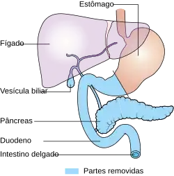 - 1 2 3 Departamento de Cirurgia da Universidade da Califórnia. «Pancreatectomy». Consultado em 6 de março de 2015
