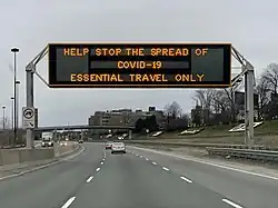 Em 11 de março, a Organização Mundial da Saúde (OMS) classificou oficialmente o surto como uma pandemia.[8][9] No dia 18 de março de 2020, dado a situação alarmante que a pandemia tinha chegado, o presidente dos Estados Unidos Donald Trump em entrevista, anunciou que iria invocar a lei de guerra e comparou esforços à Segunda Guerra Mundial, fazendo uma analogia ao cenário da Segunda Guerra.[87]