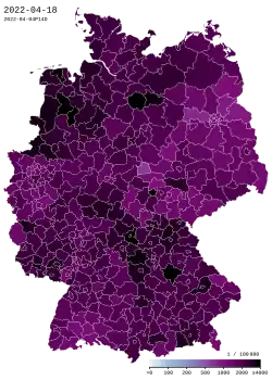 A pandemia de COVID-19 na Alemanha começou em 27 de janeiro de 2020, com o primeiro caso confirmado em Munique, na Baviera. A maioria dos casos registrados no final de janeiro e início de fevereiro, foram transmitidos a partir da sede de uma fábrica de autopeças. Em 25 e 26 de fevereiro, vários casos relacionados ao surto italiano foram detectados no estado de Baden-Württemberg. A primeira morte foi registrada em 9 de março, de uma pessoa infectada em um evento carnavalesco em Heinsberg, na Renânia do Norte Vestfália.[1] Posteriormente, novos casos foram registrados por pessoas que estiveram na região de Heinsberg, bem como outras vindas da Itália, Irã e China.[2][3][4][5]