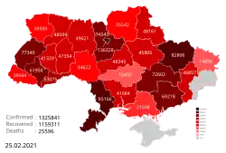 - ↑ «В Україні зафіксовано першу смерть людини, інфікованої коронавірусом COVID-19» (em ucraniano). Ministry of Healthcare. 13 de março de 2020. Consultado em 13 de março de 2020
