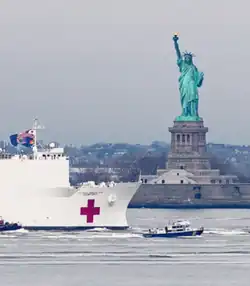![]() O navio de assistência hospitalar USNS Comfort no porto de Nova Iorque em 30 de março de 2020 | |
