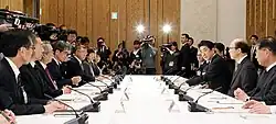 - ↑ «日本執政黨國會議員每人將向中國捐款5000日元». The Nikkei (em chinês). Cópia arquivada em 15 de fevereiro de 2020