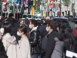 - ↑ «Amid virus outbreak, Japan stores scramble to meet demand for face masks». Japan Times. ISSN 0447-5763. Cópia arquivada em 1 de fevereiro de 2020