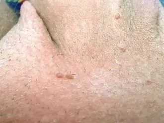Papiloma é um tipo de tumor benigno da pele, que causa projecções epiteliais em forma de papilas ou verrugas. Mais comuns entre os 30 e 50 anos, afetam homens e mulheres em iguais proporções, indolor, em média entre 1 e 2 cm, com aparência de couve-flor e com pouco risco de se tornar maligno.[1]