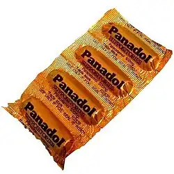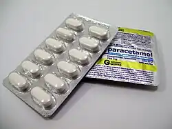 O paracetamolDCI, também conhecido por acetaminofeno e, comercialmente, por Tylenol, Panadol e Ben-u-ron, é um fármaco com propriedades analgésicas e antipiréticas utilizado essencialmente para tratar a febre e a dor leve e moderada,[4] embora existam poucas evidências de que o seu uso seja realmente eficaz no alívio da febre em crianças.[5][6] É geralmente vendido em combinação com outros princípios activos, como nos antitussígenos,[4] ou em medicamentos para o alívio da dor com opiáceos, onde o paracetamol é usado para o alívio da dor severa, como a dor oncológica ou pós-operatória.[7] Geralmente é administrado por via oral embora também esteja disponível para uso por via rectal ou intravenosa, pelo que pode apresentar-se na forma de cápsulas, comprimidos, supositórios ou gotas.[4][8] Os efeitos duram entre duas e quatro horas.[8]