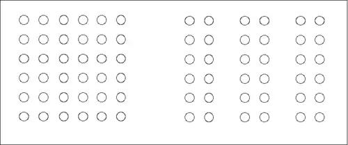 No desenho abaixo, é mais fácil distinguir linhas (e não colunas), parecendo que os círculos brancos se agrupam entre si, o mesmo acontecendo com os pretos, apesar de a distância entre as linhas e entre as colunas ser a mesma.