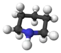 Piperidina é um composto orgânico com a fórmula C5H11N. É uma amina heterocíclica com um anel de seis membros contendo cinco átomos de carbono e um átomo de nitrogênio. É um líquido claro com um odor similar ao de pimenta.