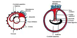 O saco vitelino e a cavidade amniótica tornam passiveis os movimentos morfogenéticos das células do disco embrionário. Assim que se formam o âmnio, o disco embrionário e o saco vitelino primitivo, surgem cavidades isoladas - as lacunas - no sinciciotrofoblasto. Essas lacunas logo se tornam preenchidas por uma mistura de sangue materno, proveniente dos capilares endometriais rompidos e restos células das glândulas uterinas erodidas. O fluido nos espaços lacunares - o embriótrofo - passa por difusão ao disco embrionário e fornece material nutritivo ao embrião.