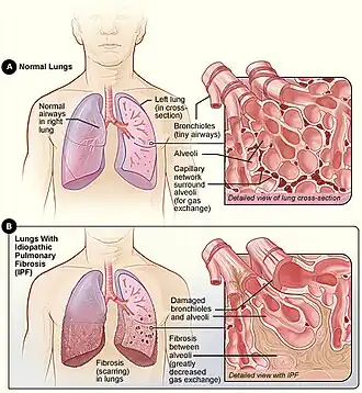 - ↑ «Idiopathic Pulmonary Fibrosis». www.nhlbi.nih.gov/. Consultado em 5 de agosto de 2014