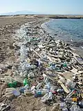 Poluição plástica ou poluição por plástico é o acúmulo de objetos e partículas provenientes de plásticos (por exemplo, garrafas, sacolas e microesferas) no meio ambiente da Terra que afeta negativamente os seres humanos, a vida selvagem e seu habitat.[36][37] Os plásticos que atuam como poluentes são categorizados em tamanhos de detritos micro, meso ou macro.[38] Os plásticos são baratos e duráveis, tornando-os muito adaptáveis para diferentes usos; como resultado, os fabricantes optam por usa-los em vez de outros materiais.[39] No entanto, a estrutura química da maioria dos plásticos os torna resistentes a muitos processos naturais de degradação.[40] Juntos, esses dois fatores permitem que grandes volumes de plástico entrem no meio ambiente como resíduos mal administrados e que persistam no ecossistema .